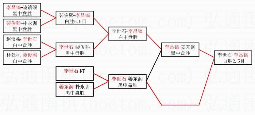 2.上半区半决赛李昌镐获胜, 比分:李昌镐 1:0 姜东润。棋局: