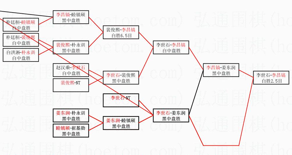 2.上半区半决赛李昌镐获胜, 比分:李昌镐 1:0 姜东润。棋局:
