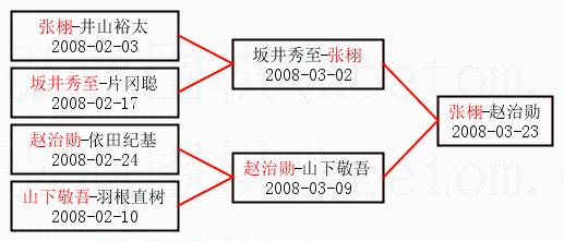 2.上半区半决赛张栩获胜, 比分:张栩 1:0 坂井秀至。棋局: