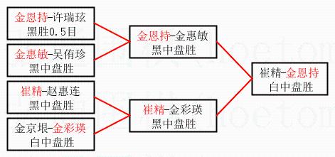 3.下半区半决赛崔精获胜,比分:崔精1:0金彩瑛。棋局: