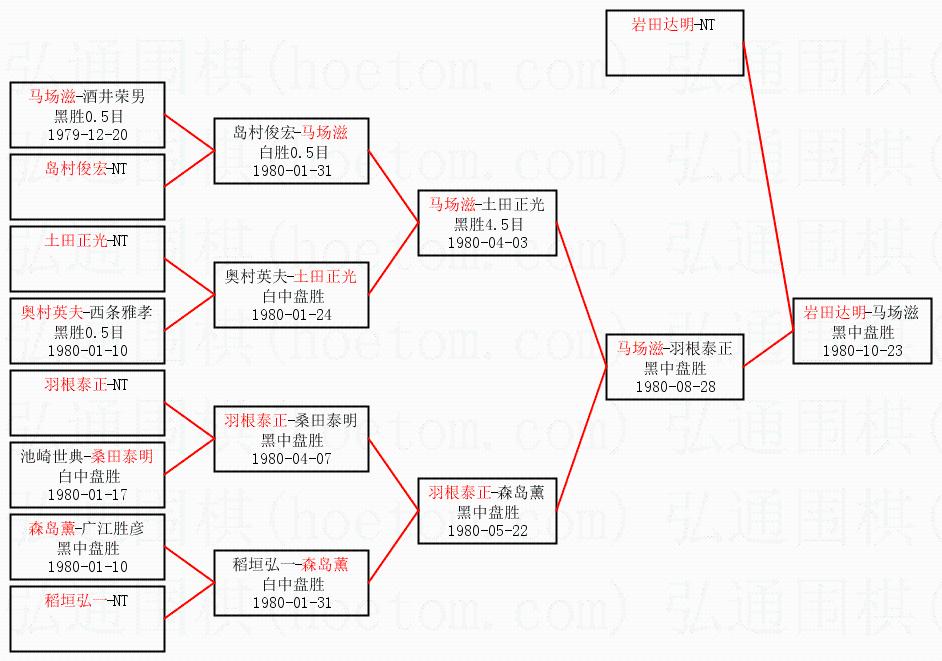 1.岩田达明获得冠军,马场滋获得亚军。决赛比分:岩田达明1:0马场滋。棋局: