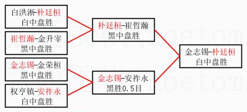 2.上半区半决赛朴廷桓获胜, 比分:朴廷桓 1:0 崔哲瀚。棋局: