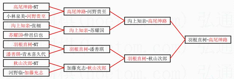 | 1.高尾绅路获得冠军,羽根直树获得亚军。决赛比分:高尾绅路2:0羽根直树。棋局: | ||