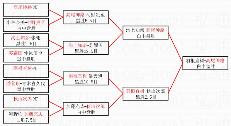 | 1.高尾绅路获得冠军,羽根直树获得亚军。决赛比分:高尾绅路2:0羽根直树。棋局: | ||