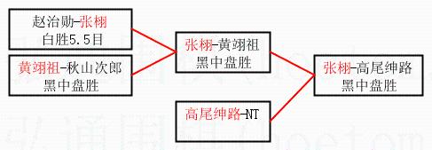 | 1.张栩获得冠军,高尾绅路获得亚军。决赛比分:张栩3:1高尾绅路。棋局: | ||