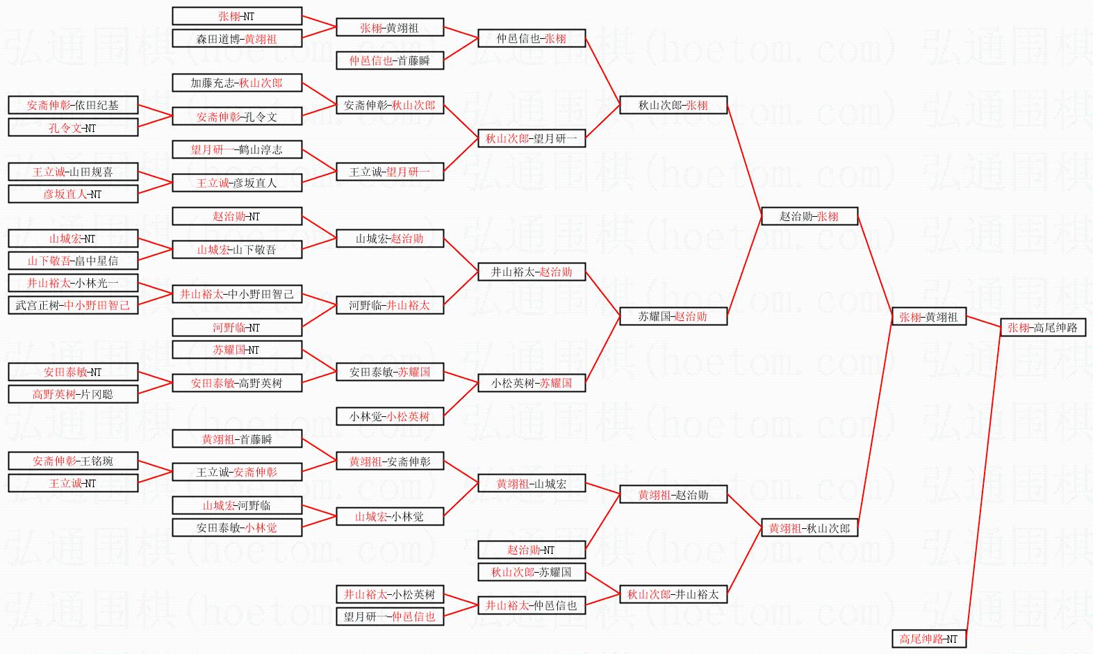 | 1.张栩获得冠军,高尾绅路获得亚军。决赛比分:张栩3:1高尾绅路。棋局: | ||