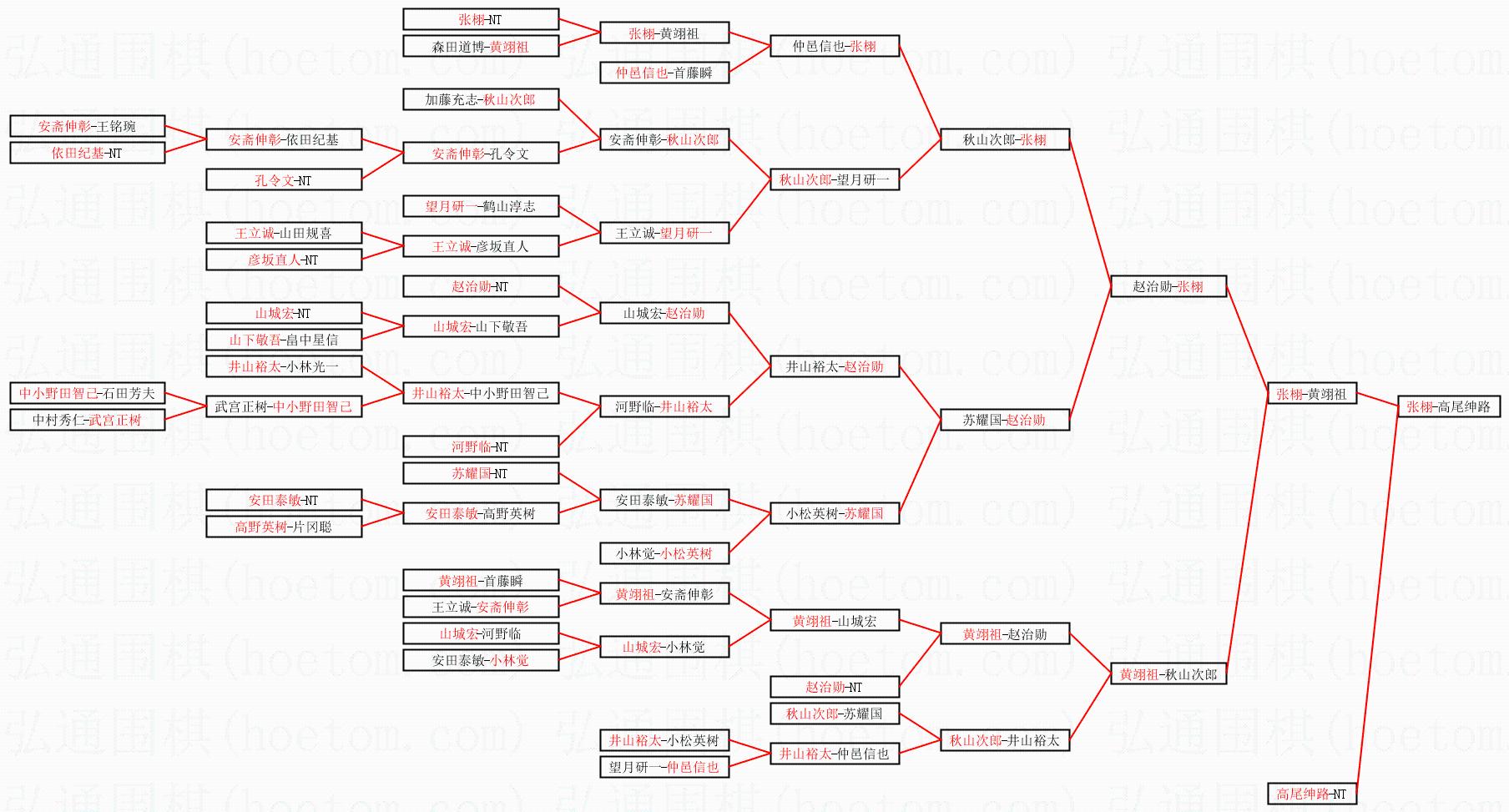 | 1.张栩获得冠军,高尾绅路获得亚军。决赛比分:张栩3:1高尾绅路。棋局: | ||