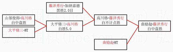 2.上半区半决赛藤泽秀行获胜, 比分:藤泽秀行 1:0 高川格。棋局: