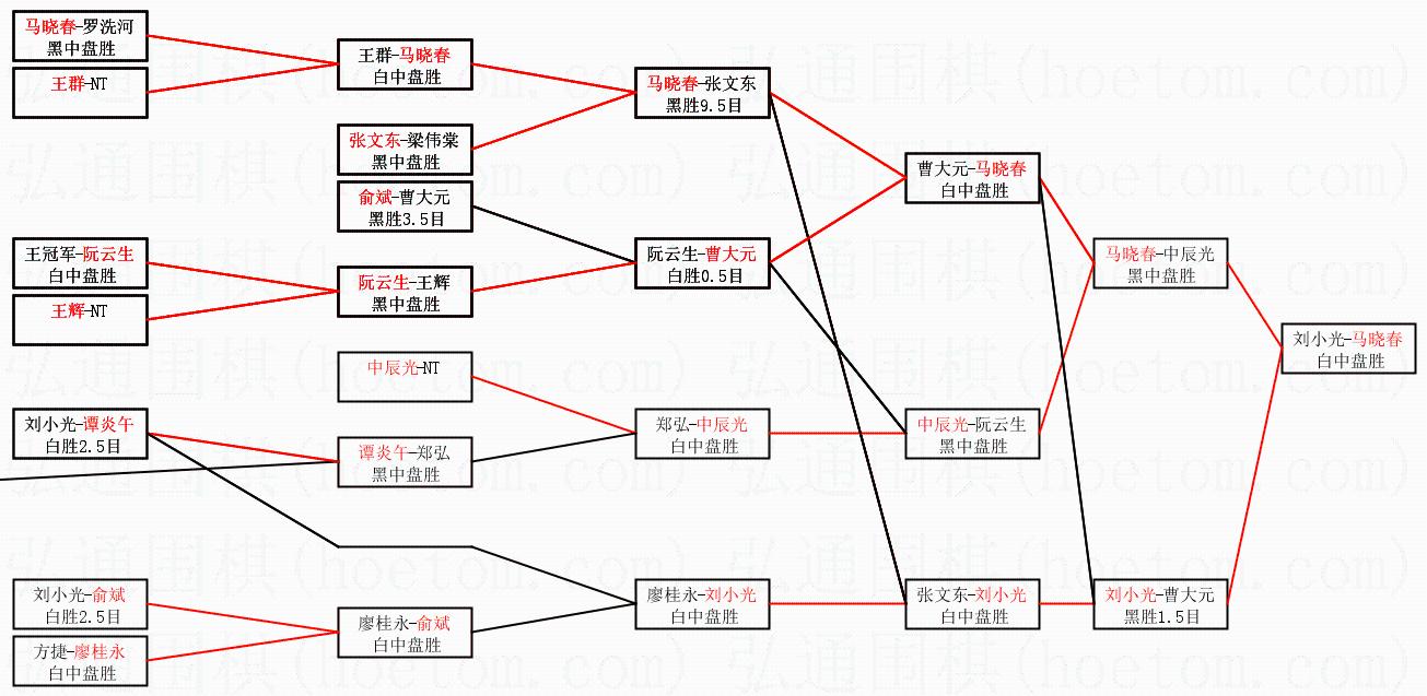 2.上半区半决赛马晓春获胜, 比分:马晓春 1:0 中辰光。棋局: