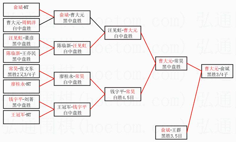 1.曹大元获得冠军,俞斌获得亚军。决赛比分:曹大元1:0俞斌。棋局: