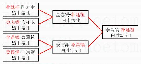3.下半区半决赛李昌镐获胜,比分:李昌镐1:0姜儒泽。棋局: