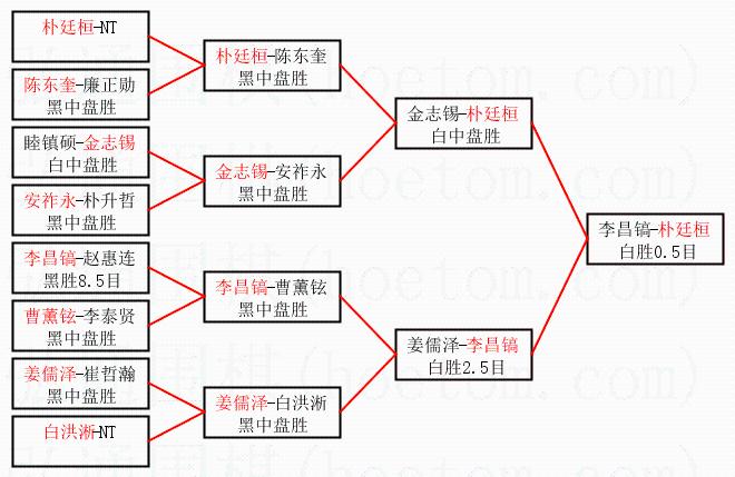 | 1.朴廷桓获得冠军,李昌镐获得亚军。决赛比分:朴廷桓2:1李昌镐。棋局: | ||