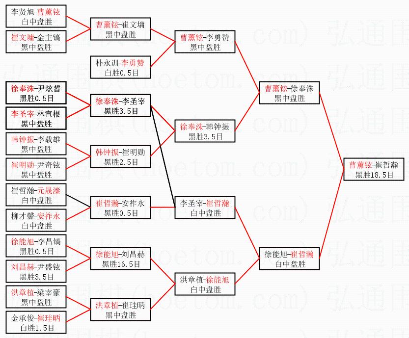 | 1.曹薰铉获得冠军,崔哲瀚获得亚军。决赛比分:曹薰铉2:1崔哲瀚。棋局: | ||