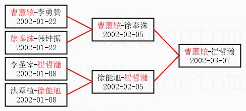 | 1.曹薰铉获得冠军,崔哲瀚获得亚军。决赛比分:曹薰铉2:1崔哲瀚。棋局: | ||