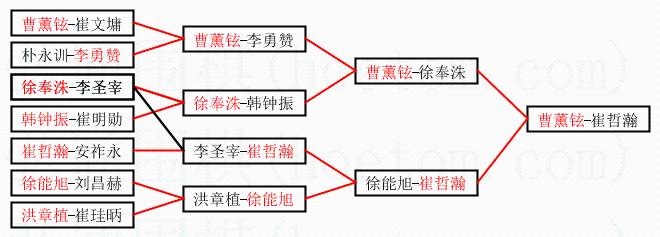 | 1.曹薰铉获得冠军,崔哲瀚获得亚军。决赛比分:曹薰铉2:1崔哲瀚。棋局: | ||