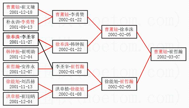 2.上半区半决赛曹薰铉获胜, 比分:曹薰铉 1:0 徐奉洙。棋局: