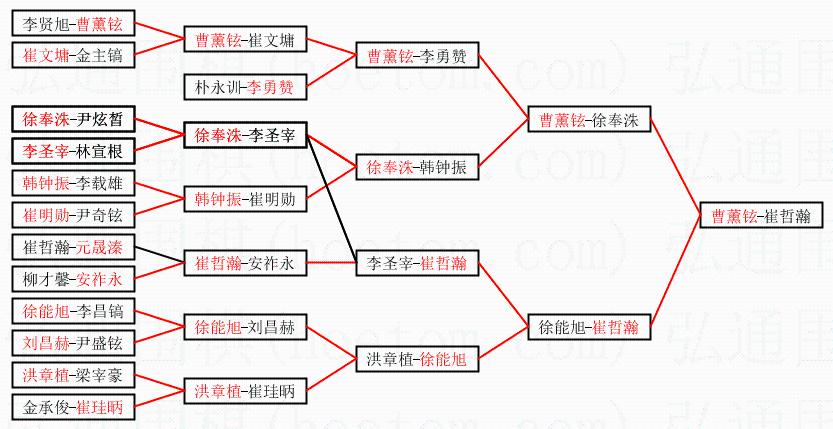 2.上半区半决赛曹薰铉获胜, 比分:曹薰铉 1:0 徐奉洙。棋局: