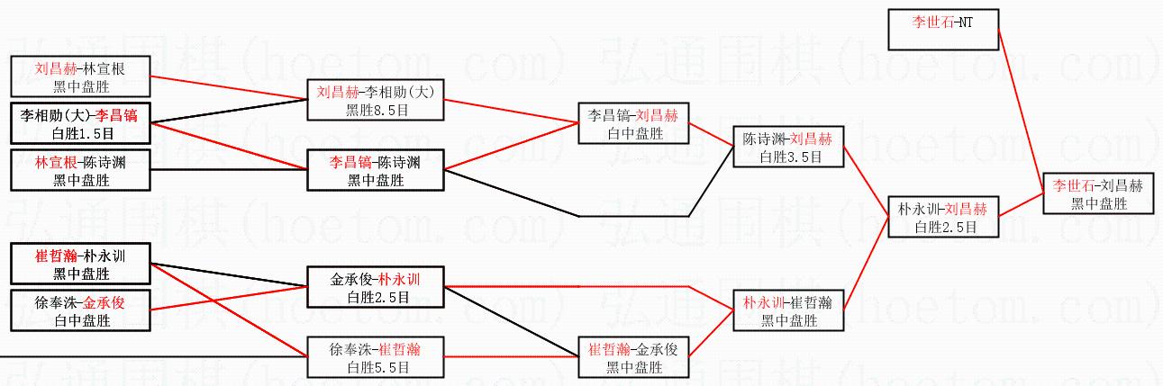 1.李世石获得冠军,刘昌赫获得亚军。决赛比分:李世石2:1刘昌赫。棋局: