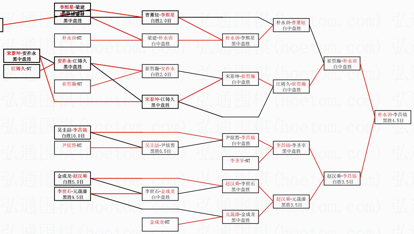 2.上半区半决赛朴永训获胜, 比分:朴永训 1:0 崔哲瀚。棋局: