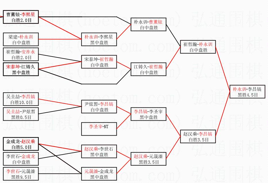 2.上半区半决赛朴永训获胜, 比分:朴永训 1:0 崔哲瀚。棋局:
