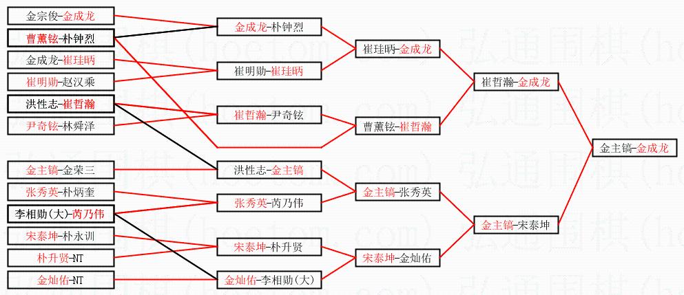 1.金成龙获得冠军,金主镐获得亚军。决赛比分:金成龙2:1金主镐。棋局: