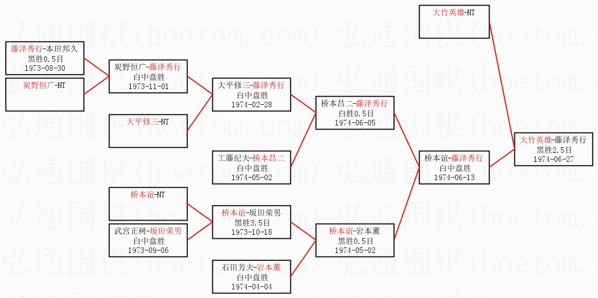 1.大竹英雄获得冠军,藤泽秀行获得亚军。决赛比分:大竹英雄2:0藤泽秀行。棋局: