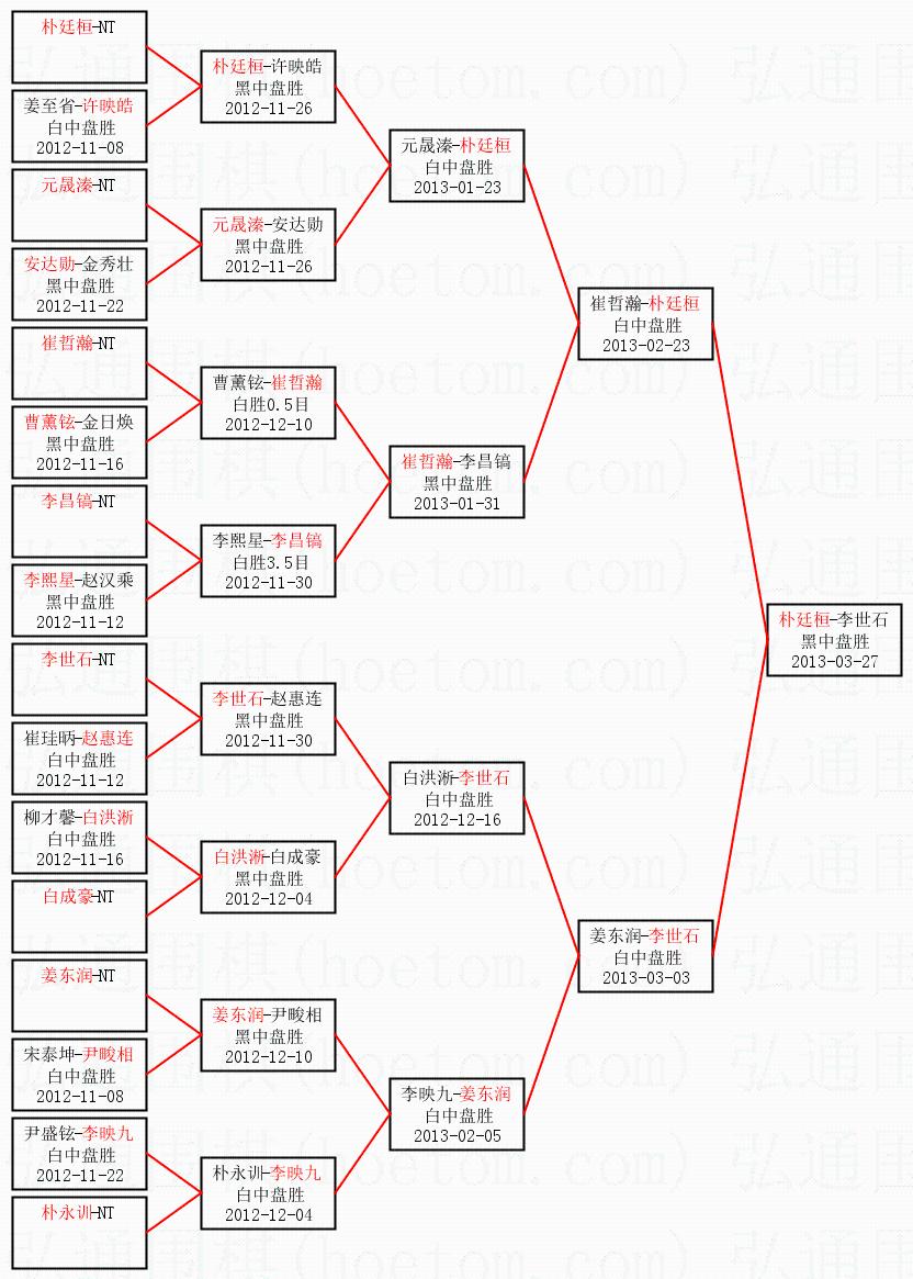 1.朴廷桓获得冠军,李世石获得亚军。决赛比分:朴廷桓2:0李世石。棋局: