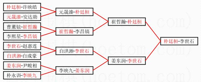| 1.朴廷桓获得冠军,李世石获得亚军。决赛比分:朴廷桓2:0李世石。棋局: | ||