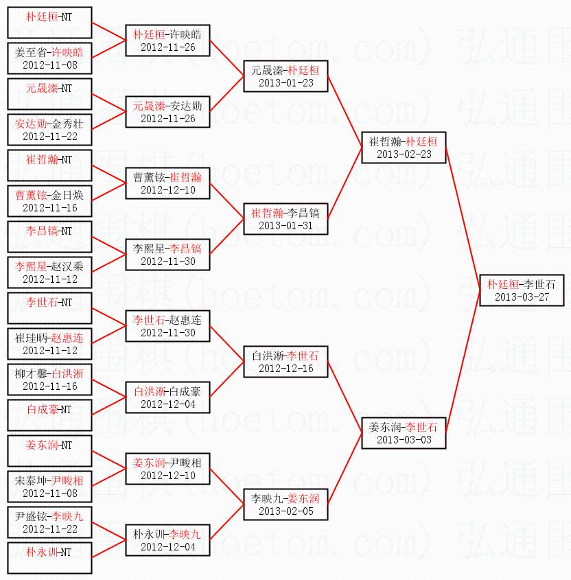 | 1.朴廷桓获得冠军,李世石获得亚军。决赛比分:朴廷桓2:0李世石。棋局: | ||