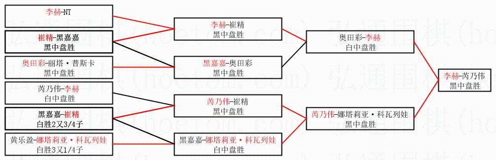 2.上半区半决赛李赫获胜, 比分:李赫 1:0 奥田彩。棋局: