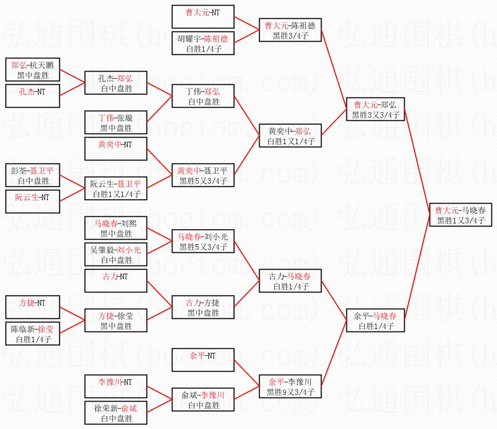 2.上半区半决赛曹大元获胜, 比分:曹大元 1:0 郑弘。棋局: