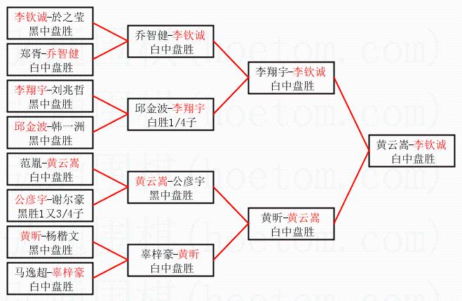 1.李钦诚获得冠军,黄云嵩获得亚军。决赛比分:李钦诚1:0黄云嵩。棋局:
