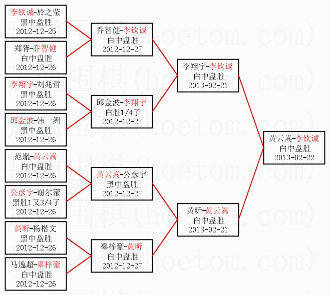 1.李钦诚获得冠军,黄云嵩获得亚军。决赛比分:李钦诚1:0黄云嵩。棋局: