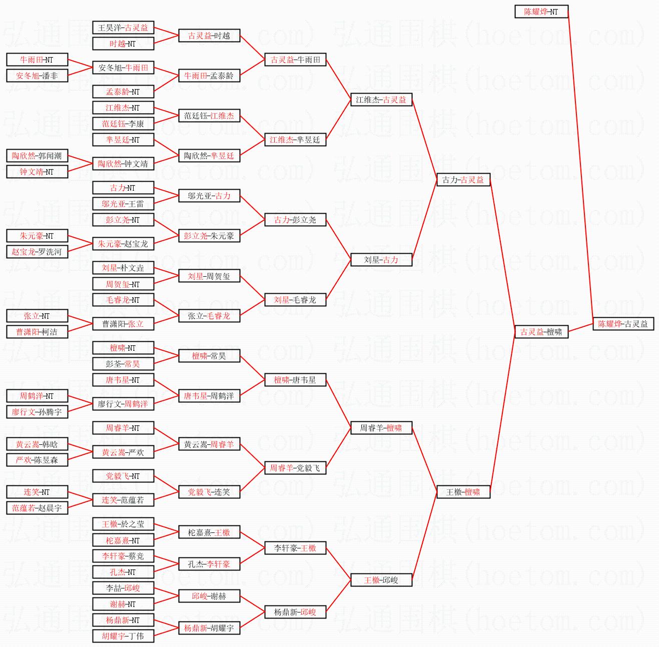 1.陈耀烨获得冠军,古灵益获得亚军。决赛比分:陈耀烨2:0古灵益。棋局: