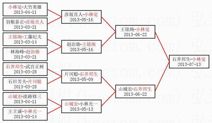 2.上半区半决赛小林觉获胜, 比分:小林觉 1:0 王铭琬。棋局: