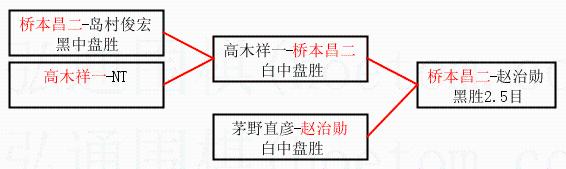 1.桥本昌二获得冠军,赵治勋获得亚军。决赛比分:桥本昌二1:0赵治勋。棋局: