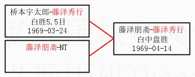 2.上半区半决赛藤泽秀行获胜, 比分:藤泽秀行 1:0 桥本宇太郎。棋局: