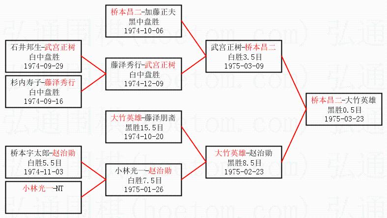 1.桥本昌二获得冠军,大竹英雄获得亚军。决赛比分:桥本昌二1:0大竹英雄。棋局: