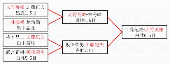 1.大竹英雄获得冠军,工藤纪夫获得亚军。决赛比分:大竹英雄1:0工藤纪夫。棋局: