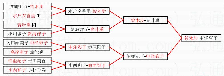 1.铃木步获得冠军,中泽彩子获得亚军。决赛比分:铃木步1:0中泽彩子。棋局: