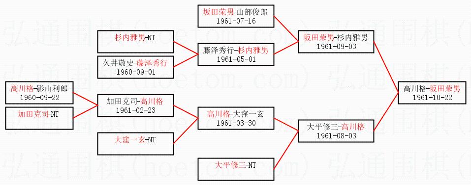 1.坂田荣男获得冠军,高川格获得亚军。决赛比分:坂田荣男2:1高川格。棋局: