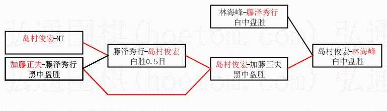 2.上半区半决赛藤泽秀行获胜, 比分:藤泽秀行 1:0 林海峰。棋局: