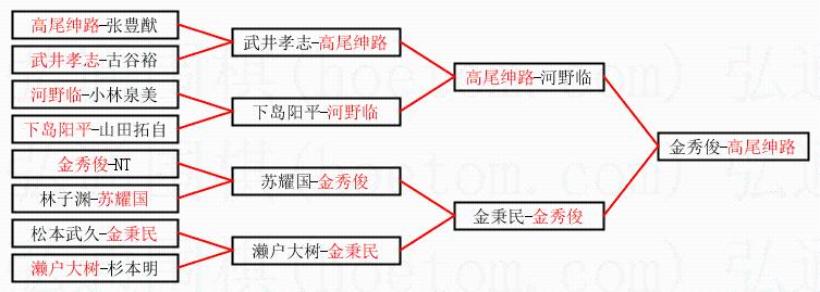 1.高尾绅路获得冠军,金秀俊获得亚军。决赛比分:高尾绅路1:0金秀俊。棋局: