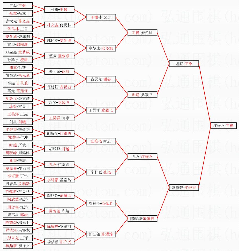 1.王檄获得冠军,江维杰获得亚军。决赛比分:王檄1:0江维杰。棋局: