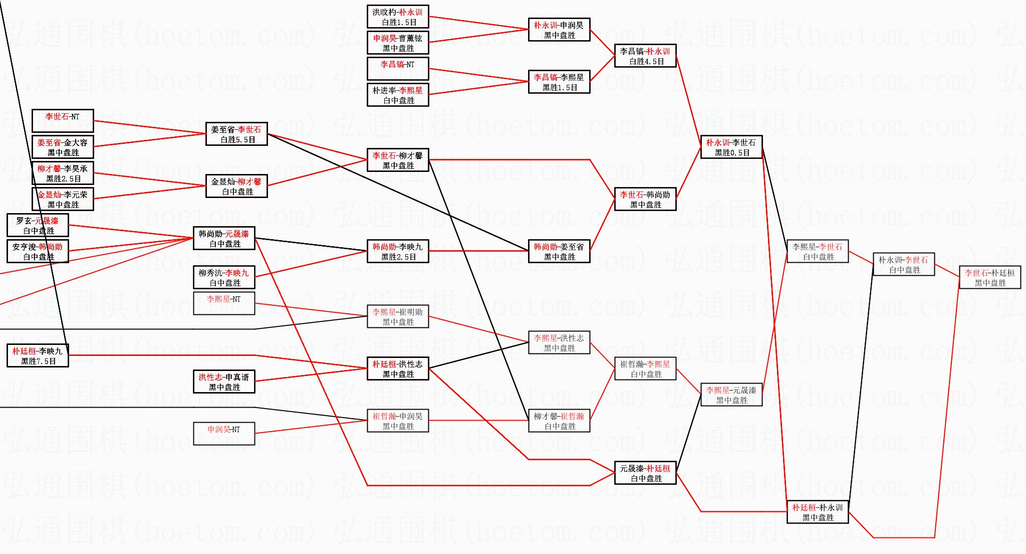 1.李世石获得冠军,朴廷桓获得亚军。决赛比分:李世石2:1朴廷桓。棋局: