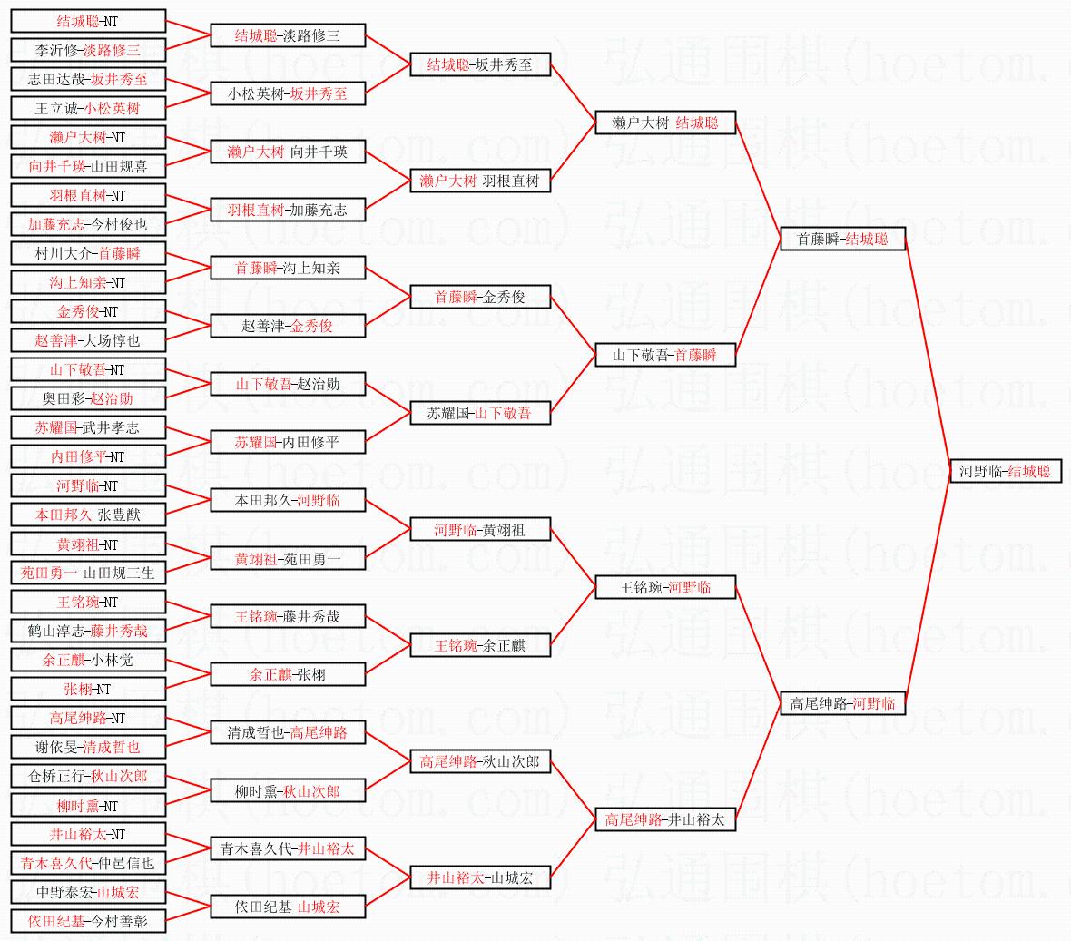 1.结城聪获得冠军,河野临获得亚军。决赛比分:结城聪1:0河野临。棋局: