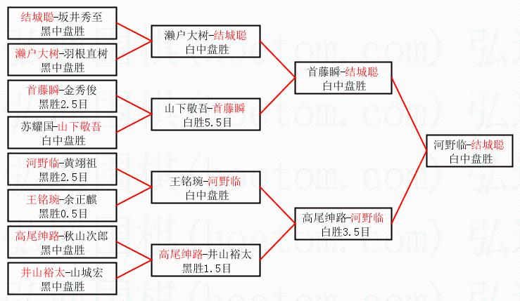 1.结城聪获得冠军,河野临获得亚军。决赛比分:结城聪1:0河野临。棋局: