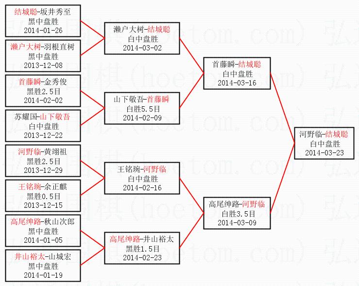 1.结城聪获得冠军,河野临获得亚军。决赛比分:结城聪1:0河野临。棋局: