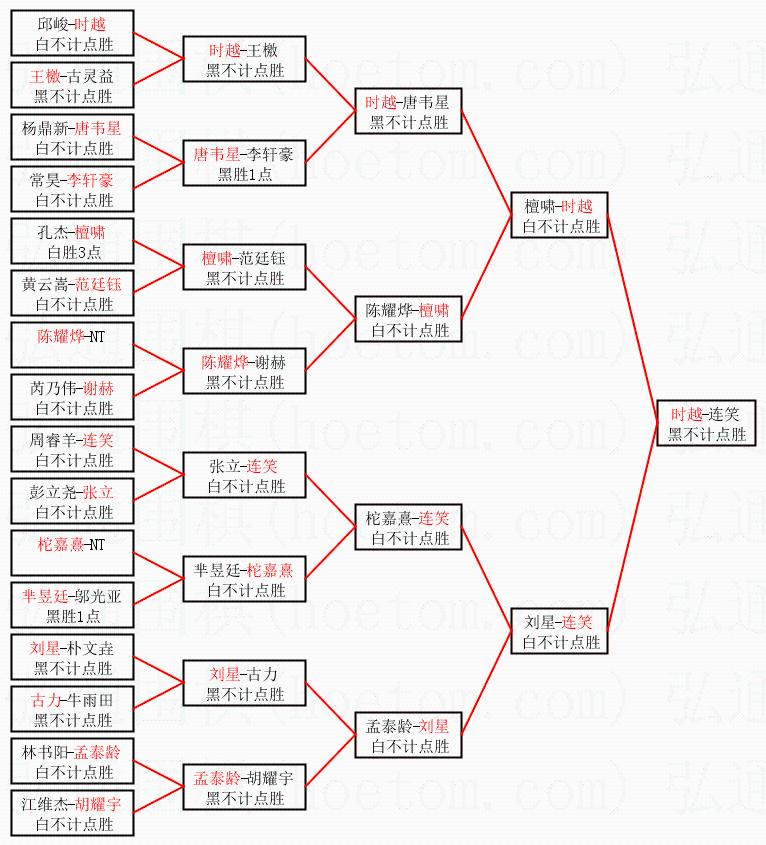 | 1.时越获得冠军,连笑获得亚军。决赛比分:时越2:0连笑。棋局: | ||