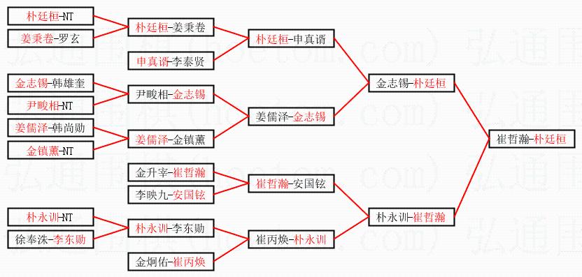 2.上半区半决赛朴廷桓获胜, 比分:朴廷桓 1:0 金志锡。棋局: